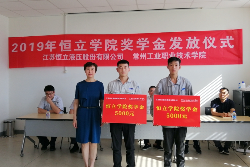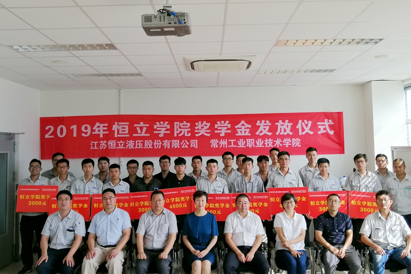 9月18日,公司2019年“恒立公司”奖学金发放仪式在江苏恒立液压股份有限公司常州铸造分公司举行。副董事长蒋新萍、校企合作处处长褚守云、教务处处长潘安霞、机械工程与技术公司经理徐伟、电气工程与技术公司副经理冷雪锋,恒立铸造副总经理庄晔、人事经理赵贤文、铸造二期经理马艳东参加仪式,并为34名优秀员工颁发奖学金。