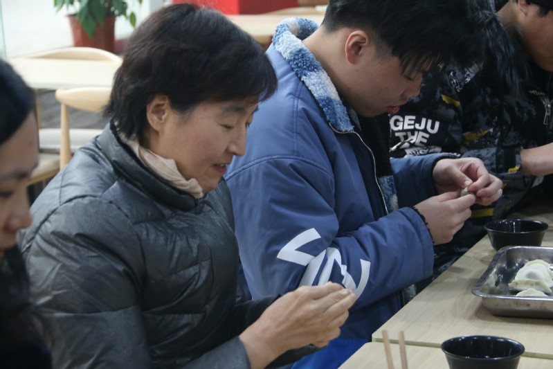 班会课后,班级团支部开展包饺子活动,蒋新萍和同学们一起转战食堂。同学们明确分工,合理安排,团结协作高质量高效完成各项任务。活动过程中,同学们发挥特长,认真学习包饺子的花样技巧。经过多次学习实践,一个个精致别样的饺子就完成了。随后,热腾腾的饺子呈现在大家面前,蒋新萍和同学们一起品尝自己劳动成果。