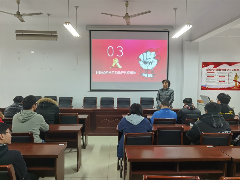 蒋新萍总结发言。她指出,2020年是不平凡的一年,同学们经历了这场在全球爆发的百年来最严重的新冠肺炎疫情,我们国家经受了一场惊心动魄的历史大考,以最短时间控制住了疫情的蔓延,使得同学们能正常学习生活,这是许许多多人特别是医务工作者、疾控工作者、科技工作者、社区工作者们迎难而上、奋勇当先、舍生忘死、甘于奉献换来的。今天的岁月静好是因为有无数可敬可爱的人们在为我们负重前行。蒋新萍希望同学们要牢记习近平总书记对青年成长的殷切期望和深情寄语,大力弘扬伟大抗精神,自觉经受严格的思想淬炼、政治历练、实践锻炼,胸怀报国情,立下强国志,将伟大抗精神践行在日常工作学习的方方面面,化为投身强国伟业的强大动力,在寻梦追梦圆梦的征程上奋勇前进。