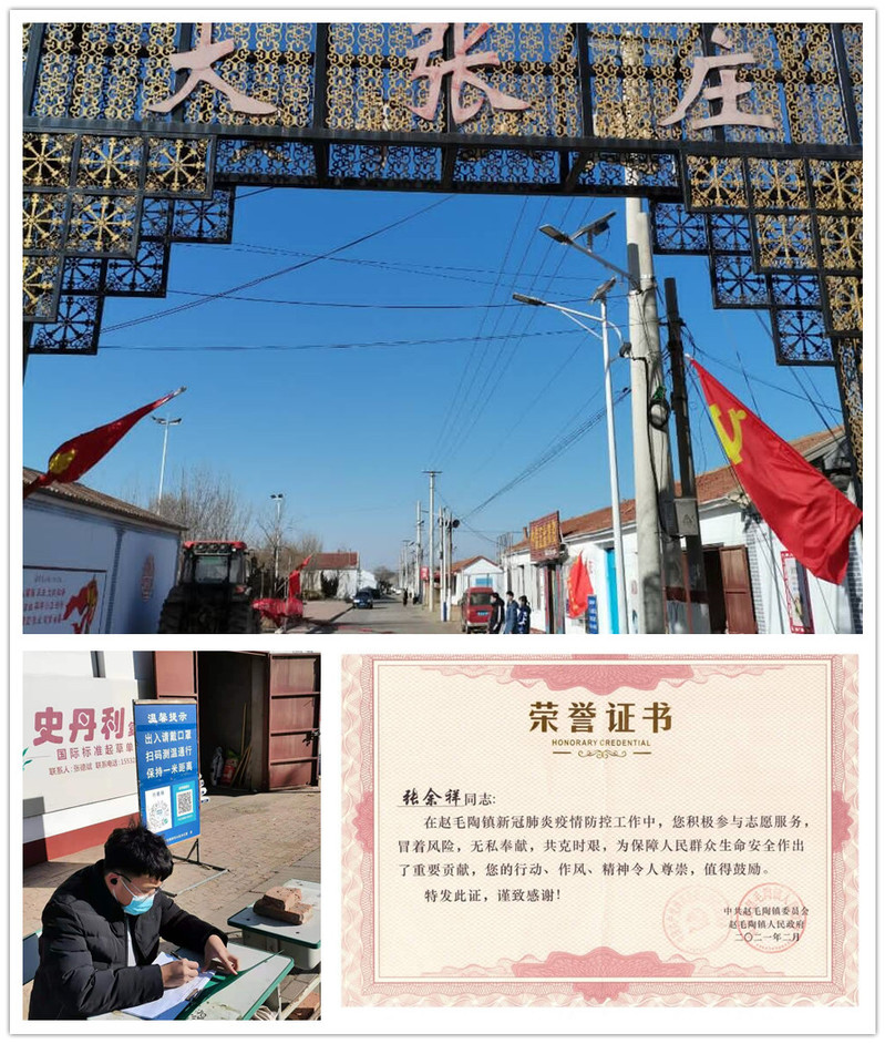 2021年1月,河北石家庄市爆发了新冠疫情。公司河北籍员工放假回家之后,按照防控要求核酸检测隔离14天。其中20数控331班张余祥同学,接到村委招募志愿者的号召,率先响应,积极报名参与村委防疫工作。加入工作后,他服从领导安排,在做好自身安全防护的情况下,提醒群众佩戴口罩,在村里的街道路口设卡排查,对外来车辆和人员进行劝返,对本村的来往车辆进行登记。