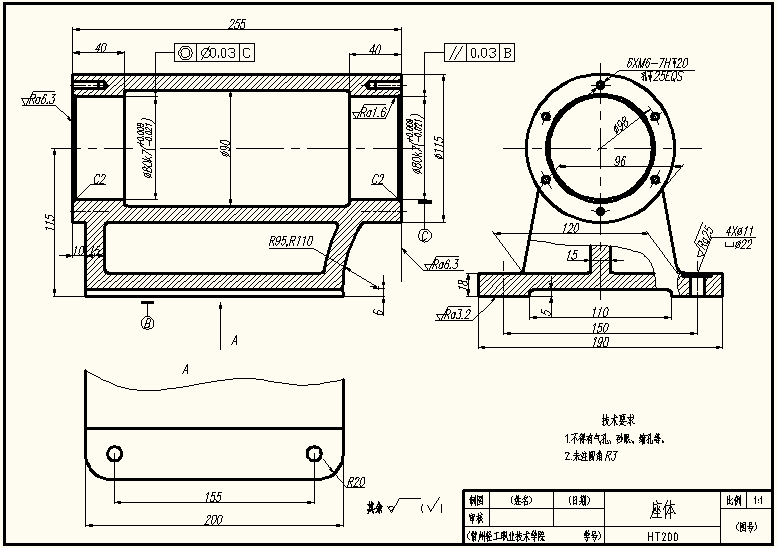 授课内容 | 铣刀头座体的工程图生成 | 学时 | 4 | ||