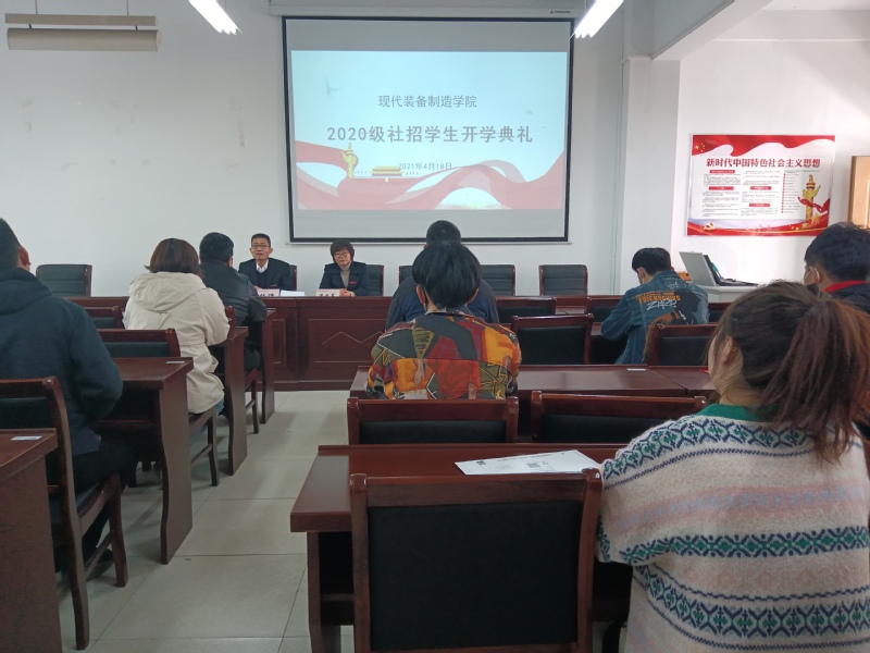 4月18日,现代装备制造公司举行2020级社招班新生开学典礼,现代装备制造公司党总支书记林伟,经理潘安霞出席了本次会议,会议由林伟主持。