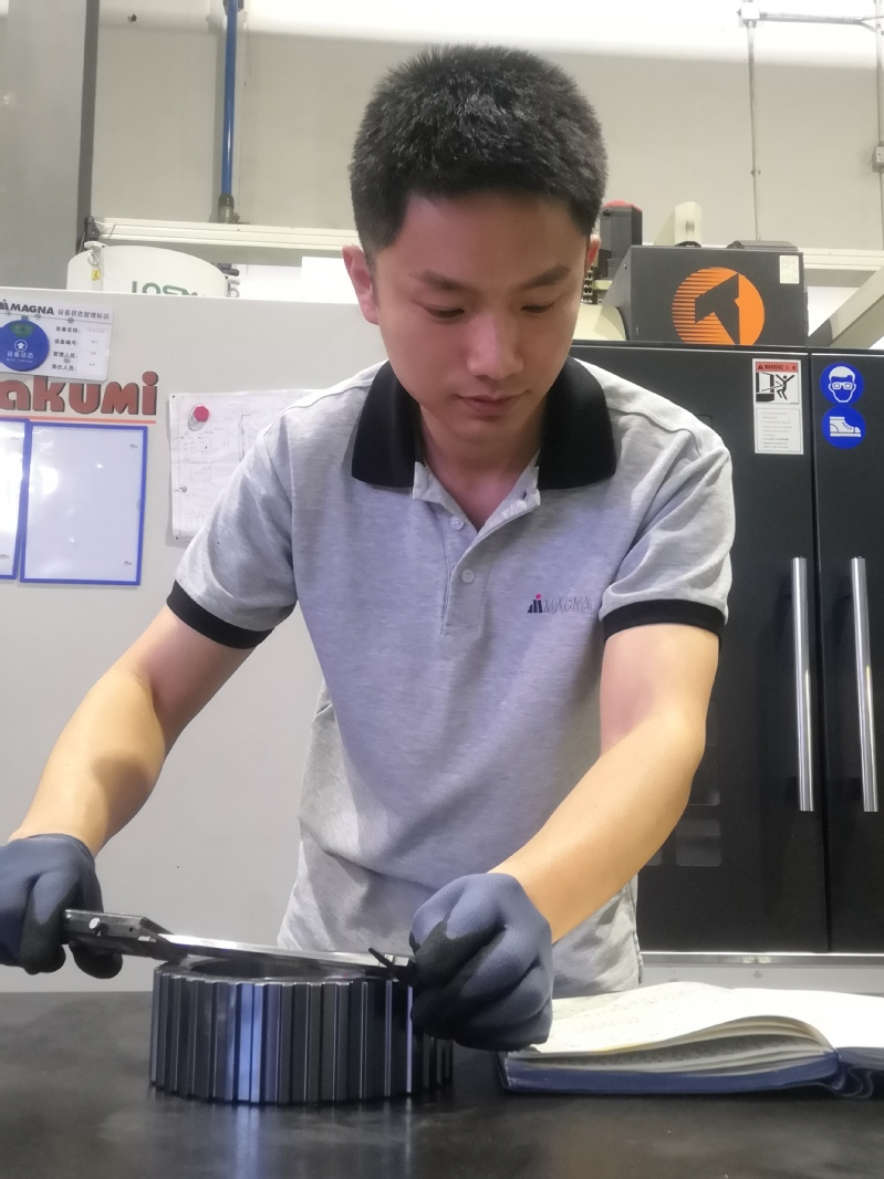 “我的技术,就是从开发这个电主轴慢慢积累起来的。”杨成对老师和公司充满感激。也就是凭着这样的顶尖技术,2016年6月,杨成成功应聘,成为麦格纳汽车系统(常州)有限公司的一名机加工专员,专门负责公司的冲压、加工的技术指导,时间不长,就做了机加工主管。