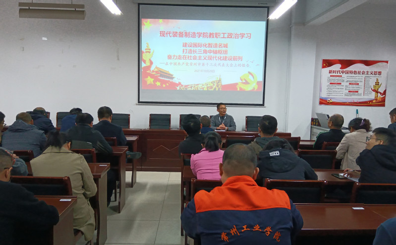 为深入推进“两在两同”建新功行动,2021年10月20日,现代装备制造公司召开教职工政治会议学习在中国共产党常州市第十三次代表大会上的报告——“建设国际化智造名城,打造长三角中轴枢纽,奋力走在社会主义现代化建设前列”。现代装备制造公司党总支书记林伟主持会议。现代装备制造公司全体教职工参加会议。