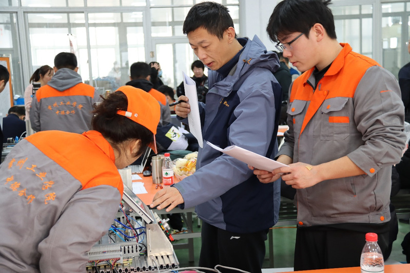 参加本次毕业考试的为19数控/机电班的30名员工。根据德国胡格教授的要求,本次考试分2个阶段。第一个阶段为理论考核,时长为2小时,考察员工经过两年半“胡格模式”的学习,对机电一体化专业理论知识的掌握程度。第二阶段为实操考核,分为4部分内容:机械加工部分、电路气路部分、PLC 控制部分、平台排故部分,时长2小时,共计8小时。实操考核由员工2人一组团队完成,考察员工独立完成工作的专业素养和团队协作的能力。