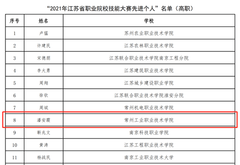 近日,江苏省职业院校技能大赛组委会发布了《关于表彰 2021 年全国及全省职业院校技能大赛先进单位和先进个人的决定》,对在2021年度全国、全省职业院校技能大赛中取得优异成绩的选手、指导教师,作出突出贡献的单位和个人予以表彰。公司3名员工被授予“员工技能标兵”称号、5名教师被授予“优秀指导教师”称号,1名教师被授予“先进个人”称号,公司被授予“先进单位奖”称号。