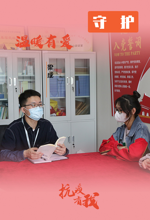 艺术创意公司辅导员梁成时刻关注员工的心理健康,筑牢员工心理防疫第一防线。“疫情期间,员工管理工作任务重、责任大,需要极大的耐心和爱心,各种突发情况也给辅导员工作带来了新的挑战。”梁成说道。4月5日晚,2020级某同学因家人去世情绪波动大,梁成在详细了解完情况后,及时与家长沟通,耐心安抚好员工,并于第二天一大早将该同学送到公司北门外。3月至今,梁成已经接待员工心理访谈50余人(次),及时对员工遇到的问题进行关心和指导。他还积极探索心理健康教育新路径,精心打造“心理盒子”“心语读书”“心理云班会”三个功能区,促进员工健康成长和全面发展。