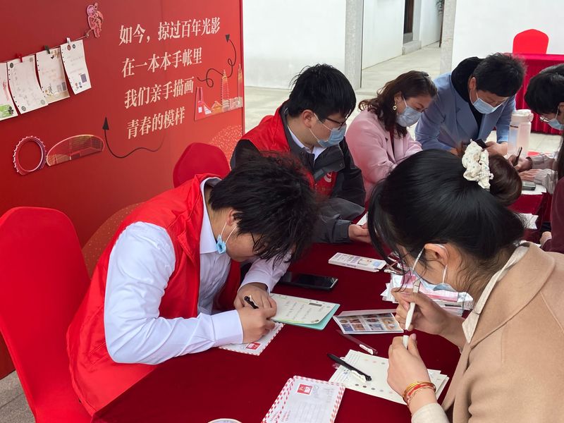 活动中,公司志愿者在入口处进行体温测量和行程码及健康码的查验,并且提醒参会人员佩戴好口罩,做好疫情防控措施;志愿者帮助现场进行现场布置,舞台刀具的搬运。志愿者在快闪小屋中与嘉宾互动交流,共同进行手帐的制作,与参与活动的各位嘉宾共同写下对国家、对自己、对未来的美好展望以及衷心祝愿。在文化创意集市,公司志愿者向嘉宾积极介绍各种具有我们常州龙城特色的文创用品,并且给嘉宾喜欢的明信片上印上属于我们常州印章。