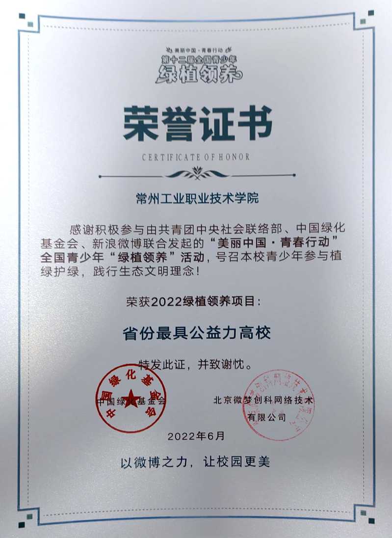 近日,由共青团中央社会联络部、中国绿化基金会、新浪微博联合发起的“美丽中国·青春行动”全国青少年“绿植领养”活动落下帷幕,公司荣获2022绿植领养项目“省份最具公益力高校”。本届活动以高校团员青年为重点群体,共有全国25个省级团委官微在微博平台积极发声,1238所高校官方微博参与线上活动,广泛覆盖126.12万在校老员工。