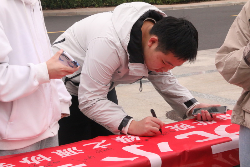 在这次活动中,集团领导高度重视,积极进行宣传和发动,成立组织,加强领导,分工负责,并下发活动通知,将活动目的、活动时间、活动方式及时通知各社员,引导社员积极参与活动,签名寄语,抒发感言,表达心声。活动现场,吸引了更加广大的同学们前来参与,井然有序地排队横幅签名,同时也呼吁身边的朋友一同践行“世界勤俭日,节约无小事”的行动。
