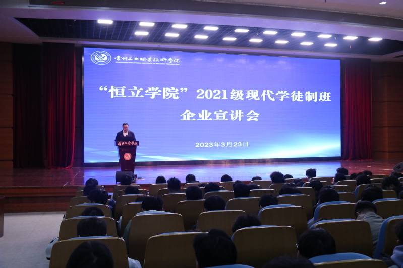徐伟对到会的恒立液压企业代表表示欢迎,感谢恒立液压长期以来对公司人才培养和就业工作的大力支持。他表示江苏恒立液压股份有限公司是液压行业中的领军企业,是一家有责任、有担当、有冲劲、有韧性的民族企业,希望以“恒立公司”现代学徒制班为契机,加速拓展产教融合、校企合作的深度和广度,着力培养企业亟需的高素质技术技能型人才,为推动制造业高质量发展贡献力量。