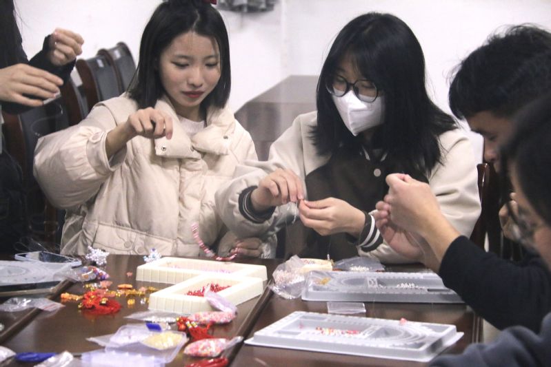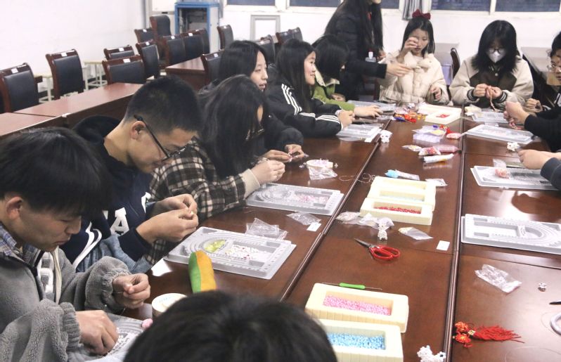 手工串珠活动,不仅能培养员工的动手能力,还能培养员工观察、思维、想象能力。这种教学实践活动,正是培养员工创新意识,发挥员工想象力,创造力的活动,是开启员工的想象之门,发展和培养员工的想象能力的最佳机会。在制作过程中一枚枚彩珠、一条条丝线在同学们手中起舞,社团指导老师和心理辅导员不断培养同学们感受美,理解美,鉴赏美和创造美的能力,鼓励同学们积极学习、积极动手、积极求助,学会表达感谢,引导同学们分享制作经验,增加同学们之间的情感交流,让同学们在制作串珠作品的过程中锻炼创造能力、学习能力、沟通能力和语言表达能力。