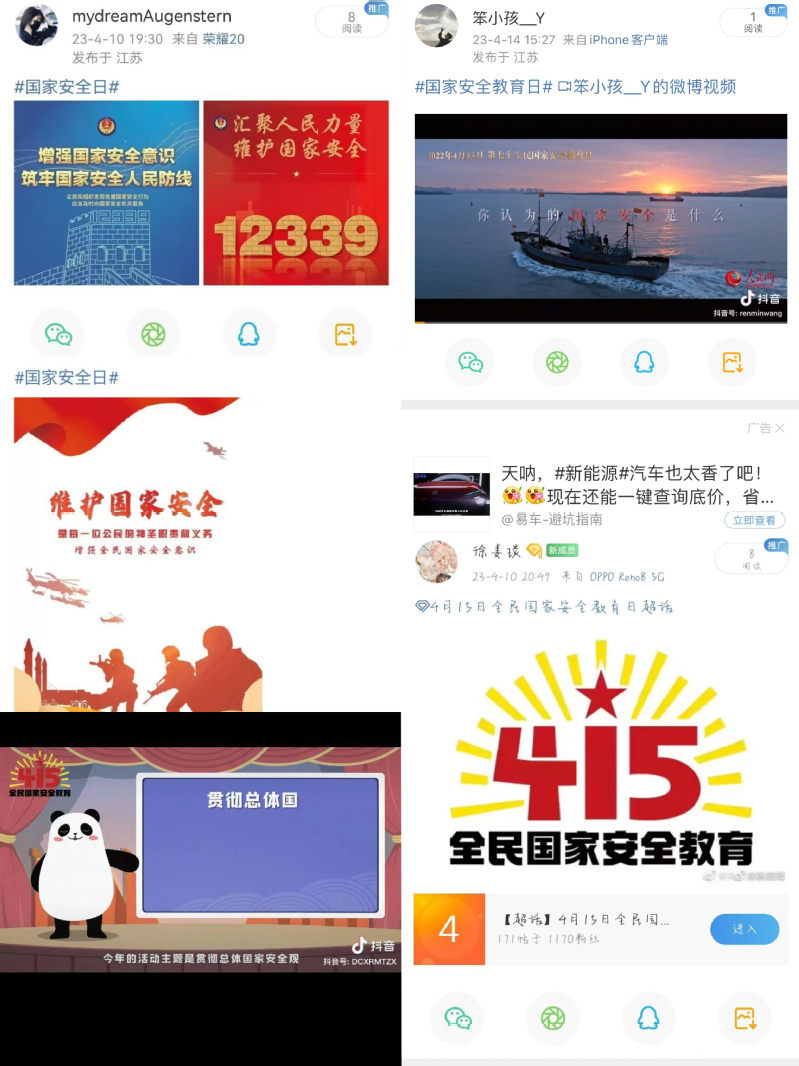 公司利用微信公众号推送国家安全日主题教育,组织青年团员参加“挺膺担当时代新人,共筑国家安全防线”全民国家安全教育日线上视频号话题互动,开展“微博#国家安全日#话题”互动,积极营造良好的国家安全宣传教育氛围。