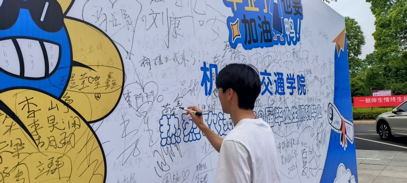 星光不问赶路人,时光不负有心人。同学们聚集在校园的一处特别准备的签名墙前。他们用心书写着对校园、对老师和同学们的感激之情,用文字和画笔勾勒出这三年来的点滴回忆。每个人都用心地在上面写下了自己的名字、班级和一段祝福的话语,这将成为他们留给公司的珍贵纪念。