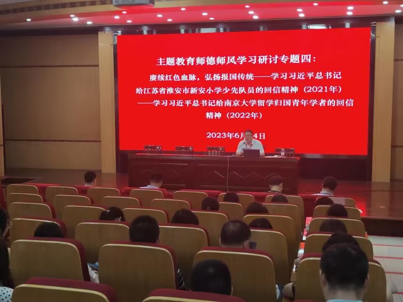 会议集中学习了习近平总书记给江苏省淮安市新安小学少先队员的回信精神(2021年)和习近平总书记给南京大学留学归国青年学者的回信精神(2022年)。会议指出,要深入学习贯彻习近平总书记重要回信精神,坚持用习近平新时代中国特色社会主义思想铸魂育人,坚持为党和人民教育事业服务,落实立德树人根本任务,传承红色基因,为党育人、为国育才,切实办好人民满意的教育,为教育高质量发展贡献力量。