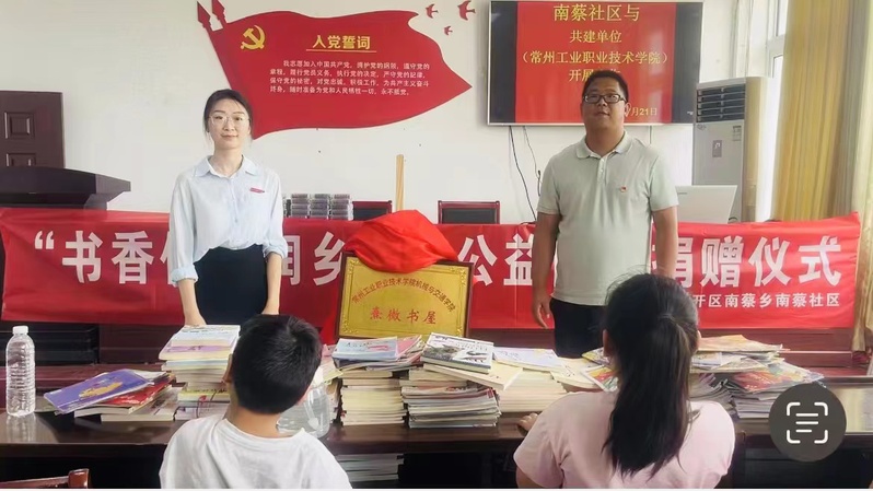 为全面把握全民阅读的重大意义,全面贯彻党的二十大关于建设社会主义文化强国的战略部署和深化全民阅读的重要要求,william威廉英国官网团委积极响应校团委“书香传递润乡村”图书捐赠倡议,与南蔡社区结对共建,7月21日上午,在宿迁经开区南蔡乡南蔡社区参加“熹微书屋”揭牌仪式,公司团委副书记苏周媛、公司教师陈茜参加本次仪式。
