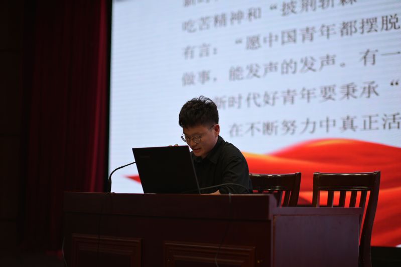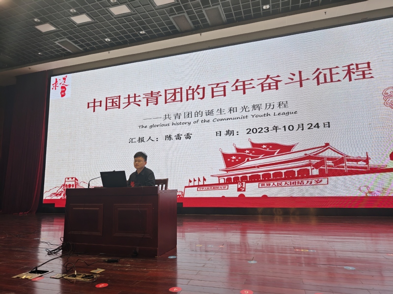 陈雷雷主要围绕“中国共产主义青年团简介”“团的3个发展阶段”“弘扬五四精神”三个方面,引导入团积极分子们与历史使命、时代使命同频共振——争做好学上进的榜样,做到刻苦耐劳的精神与进取创新的精神的统一、独立自主的精神与无私奉献精神的统一。紧接着,陈雷雷用一段视频——《五四记忆》,向同学们讲述了共青团从五四运动到当今的巨大飞跃,激发了同学们的爱国主义热情。在本次团课中,陈雷雷引用了习近平总书记青年时期在延安插队的经历,指明了共青团员要在成长和奋斗中收获成长和喜悦,在困难和压力下不断发展自我,积极参与社会实践。陈雷雷呼吁同学们作为入团积极分子要树立理想,坚定信念;勉励团课学员们积极参与社会实践活动,努力践行志愿者精神、利用课余时间积极学习,参观红色景点和革命圣地。