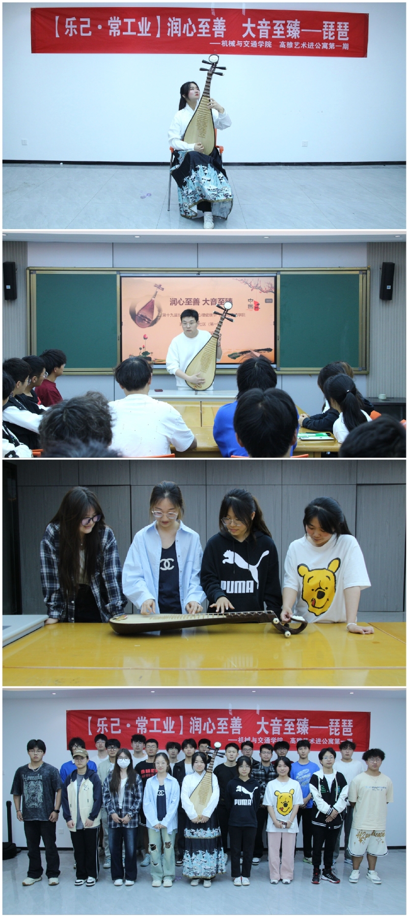 活动最后,同学们积极交流沟通,亲身参与到琵琶的教学与演奏体验中,分享各自的心得体会,在音乐浸润中放松身心,陶冶情操,在传承与发展中不断成长。