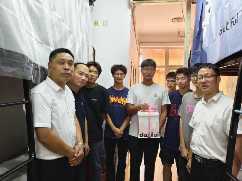 生日送祝福,公司党总支书记陈晓敏为公司3名“报到日”过生日的“小寿星”新生们送上蛋糕并合影留念,现场同学齐唱生日歌,为他们送上最“暖”的生日祝福。