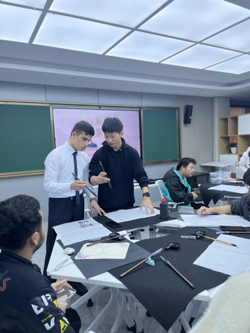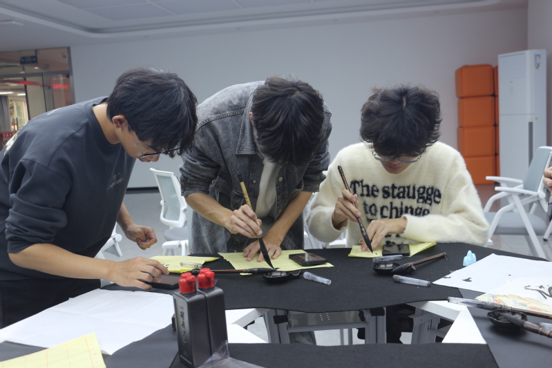 11 月 13 日下午,william威廉英国官网学趣砺行坊依托一站式社区,在心理健康活动室成功举办了“心系四海,情系五洲”书法文化交流与心灵滋养盛会。此次活动旨在通过书法这一传统艺术形式增强中外员工的文化互鉴,深化对中国书法的理解与欣赏,促进书法技艺交流提高,加强校园国际化氛围,构建文化交流桥梁。同时,通过书法活动的静心与专注,促进参与者心理健康,缓解学习与生活压力,实现身心和谐统一,进一步丰富一站式社区文化生活。