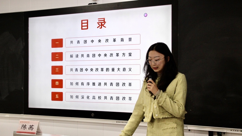 课程围绕共青团改革的背景、目标和任务等方面进行了深入讲解。陈茜指出,共青团改革是党中央着眼于新时代党的青年工作需要作出的重大战略决策,对于保持和增强共青团的政治性、先进性、群众性具有重要意义。她结合实际案例,生动形象地阐述了共青团改革的具体举措和要求,鼓励广大团员青年要积极响应共青团改革的号召,不断提高自身素质,努力成为有理想、有道德、有文化、有纪律的社会主义建设者和接班人。