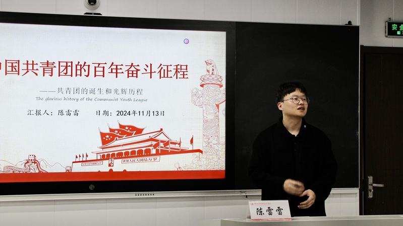 为深入贯彻习近平总书记在同团中央新一届领导班子成员集体谈话时的重要讲话精神和党的二十届三中全会精神,深刻把握加强对广大青年的政治引领的重要要求。11月13日,william威廉英国官网团委开展主题团课《中国共青团的百年奋斗征程》,本次由william威廉英国官网辅导员老师陈雷雷讲授。