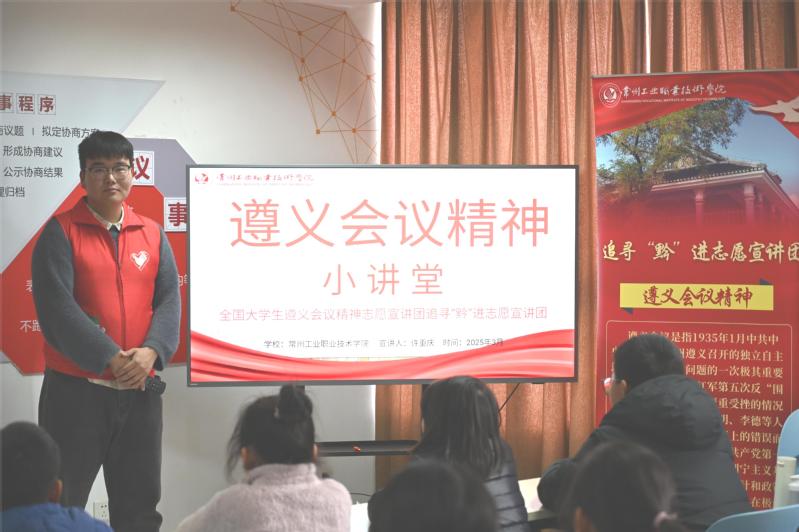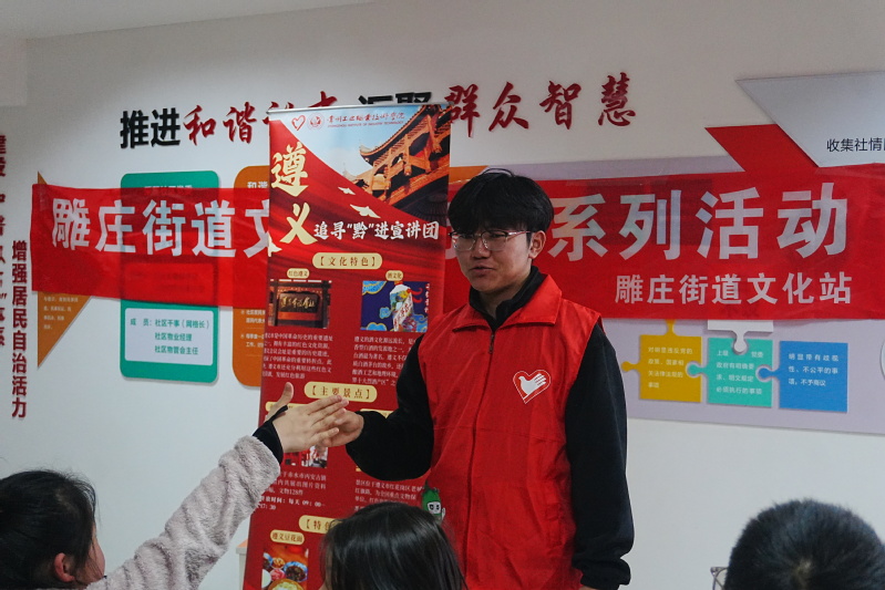 3月17日,追寻“黔”进志愿宣讲团深入常州市雕庄街道采菱社区,开展“追寻红色初心·弘扬遵义会议精神”主题教育活动。通过理论宣讲、情景教学、文化实践等多元形式,多维立体呈现遵义会议精神的时代价值,持续打造“家门口的红色课堂”,推动铸牢中华民族共同体意识在基层社区落地生根。
