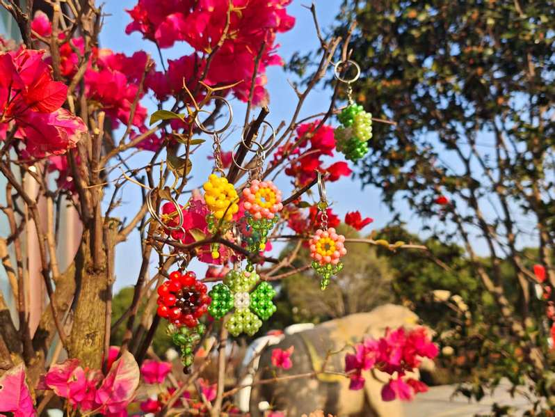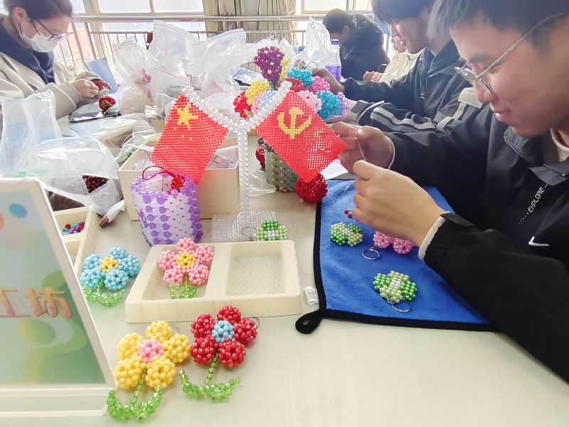 青春版“匠人精神”。“串珠和赶DDL一样,既要速度又要细致。”工坊社长陈嘉琳笑着展示手机里的串珠教程和优秀串珠作品,“这是我们的‘学术型解压’。”从社团招新时的手工摊位,到毕业季的定制珠绣礼物,这群员工匠人用串珠记录校园时光,让传统手艺染上青春底色。工坊副社长康寒则说:“我们测量过春天,花瓣展开角15.7°,光线折射率1.49,而热爱的数值,永远是∞。