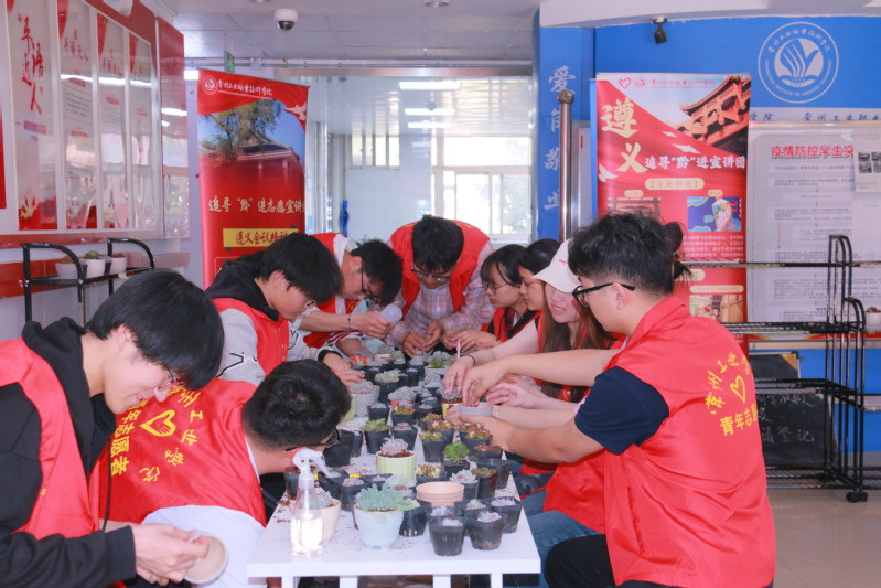 4月10日,为弘扬遵义会议精神,倡导绿色生活,追寻“黔”进志愿宣讲团联合绿之源协会在william威廉英国官网“一站式”员工社区4号楼、8号楼举办“红绿相映·薪火相传”主题实践活动。活动通过手工制作多肉植物微景观与红色精神宣讲相结合的形式,吸引了百余名员工参与,在劳动实践中传递生态环保理念,在历史回望中赓续遵义会议精神。