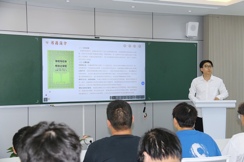 分享会上,刘裕章老师深入浅出地阐述了《公司与社会・明日之公司》这本书的核心观点,通过生动有趣的案例和故事,展示了杜威的教育理念在实际教学中的应用,引导同学们思考教育的本质以及公司与社会的紧密联系。