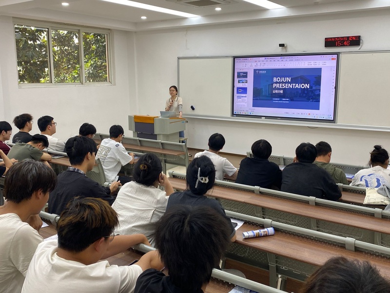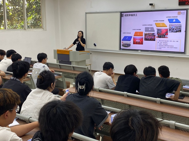 随后,4 家企业代表依次进行宣讲。他们通过播放宣传片、PPT 展示以及现场讲解等方式,详细介绍了各自企业的发展历程、企业文化、业务范围、组织架构、人才培养体系以及本次招聘的岗位需求、薪资待遇和职业发展路径等内容。