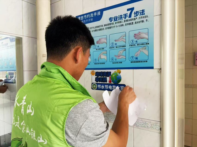 签名承诺之后,行动即刻展开。协会精心准备了印有节水、节电、节能实用提示的醒目标语贴纸,分发到参与者手中。同学们化身“绿色使者”,主动将标语张贴在宿舍楼的开关旁、卫生间的用水处、食堂取餐窗口以及教室的电器设备等关键位置。这些小小的标语如同无声的提醒,在同学们日常学习、生活的必经之处,构筑起润物细无声的“节能宣传阵地”,时刻引导大家从举手之劳做起,珍惜每一滴水、每一度电、每一份资源。