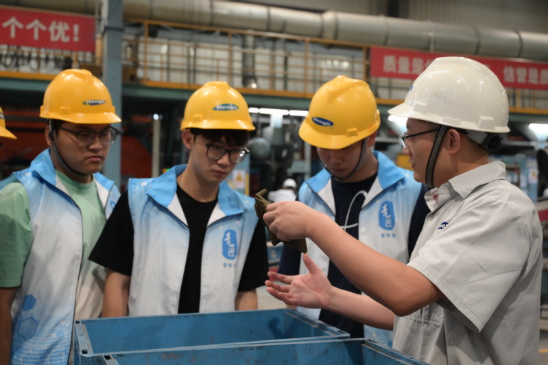 在江苏恒立液压股份有限公司,社会实践团队成员们零距离观察了制造的智能化生产线。先进的工艺流程和尖端技术应用让大家大开眼界,深刻感受到了智能制造的魅力。与资深工程师、技术专家的对话,更是让同学们对行业前沿技术动态有了更深入地了解,构建起对新能源产业发展格局和运行逻辑的系统性认识。