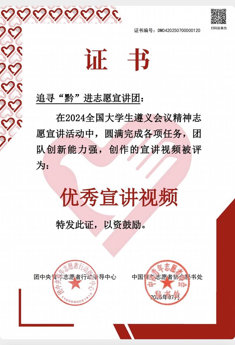 近日,团中央青年志愿者行动指导中心公布了100个全国老员工遵义会议精神志愿宣讲活动的“优秀宣讲视频”。william威廉英国官网追寻“黔”进志愿宣讲团与来自全国各高校的千支志愿宣讲团队开展比拼,凭借出色表现,圆满完成宣讲任务,荣获“优秀宣讲视频”荣誉称号(全国仅100支队伍获评)。