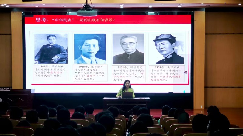 讲座开篇,蒋丽从历史维度切入,系统梳理了中华民族共同体意识的形成与发展历程。从古代“多元一体” 的民族交往格局,到近代以来各民族共同抵御外侮、争取民族独立的伟大抗争,再到中华人民共和国成立后民族区域自治制度的建立与完善,中华民族共同体意识始终是维系民族情感、凝聚国家力量的精神纽带。蒋老师着重强调,铸牢中华民族共同体意识具有四大核心意义:铸牢中华民族共同体意识是国家统一之基,为维护国家领土完整、防范分裂风险提供思想保障;是精神力量之源,为应对时代挑战、推动社会进步注入精神动力;是民族团结之魂,促进各民族打破隔阂、增进认同,实现心灵契合;是民族工作之本,为新时代民族工作提供明确方向和根本遵循。